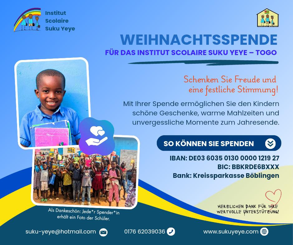 Der Förderverein Suku Yeye - Togo Schulprojekt e.V. lädt am 15. Juni 2019 zum Benefizkonzert in die Aula am Murkenbach in Böblingen ein.