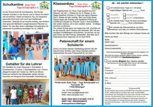 Laden Sie sich unseren aktuellen Flyer (Spendenaufruf) hier runter. Oder wollen Sie mehr über den Status des Schulprojektes wissen ? Dann ist diese Zusammenfassung das Richtige für Sie.