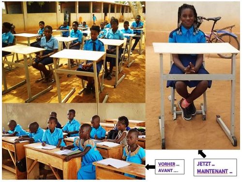 Pour nos élèves du collège nous remplaçons les tables-bancs traditionnels par des tables et chaises individuelles. Ceci permettra non seulement à chaque élève d´être indépendant et d´avoir