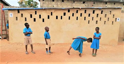 partenaires, nous avons pu construire un bloc composé de 6 urinoirs, 2 pour les garçons, 2 pour les filles et 2 pour le personnel.