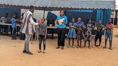 Comme chaque année, notre institut scolaire a organisé des cours de vacances gratuits pour tous les élèves du quartier et d'ailleurs. A la fin des cours, les meilleurs élèves ont reçu du matériel scolaire en récompense de leurs bons résultats. En plus des cours de vacances, une journée portes ouvertes a été organisée, à laquelle ont participé nos élèves, leurs parents et des élèves d'autres écoles. À cette occasion, tous ont pu s'informer sur 'école du projet Suku Yeye. Des jeux permettant de gagner des prix ont permis de divertir les participants.